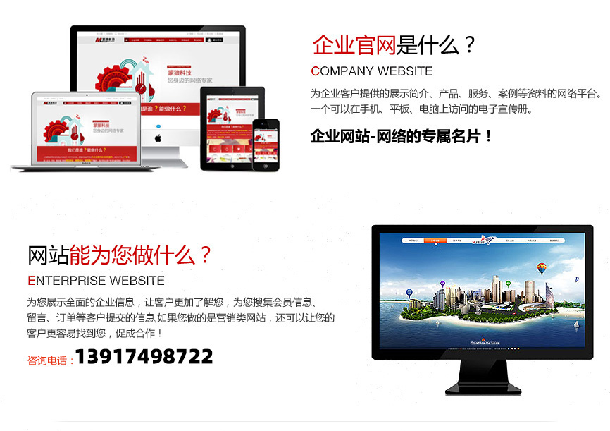 - 隨著互聯(lián)網(wǎng)的普及企業(yè)越來越需要制作電腦網(wǎng)站及手機網(wǎng)站,蒙狼科技作為企業(yè)官網(wǎng)建設商,提供網(wǎng)站建設,APP開發(fā)等業(yè)務。